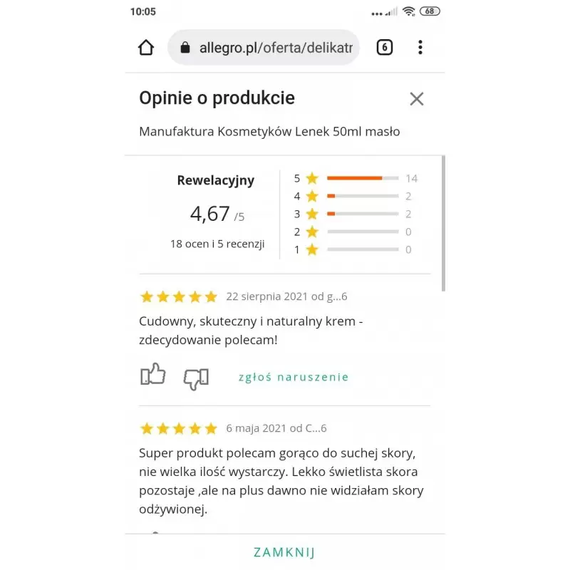 NATURALNE DELIKATNE MASŁO DO CIAŁA LENEK