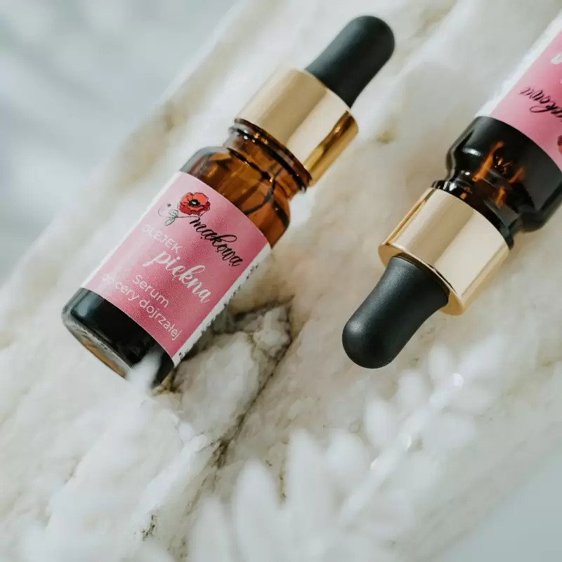 Możesz też Olejek użyć bezpośrednio na skórę twarzy, tylko pamiętaj! Jeżeli nakładasz jakikolwiek olej bezpośrednio na skórę, nie tylko Olejek Piękna, pamiętaj, żeby uprzednio ją zwilżyć, najlepiej hydrolatem lub naparem. Olej ma za zadanie chronić skórę przed utratą wilgoci, a nie ją nawilżać!